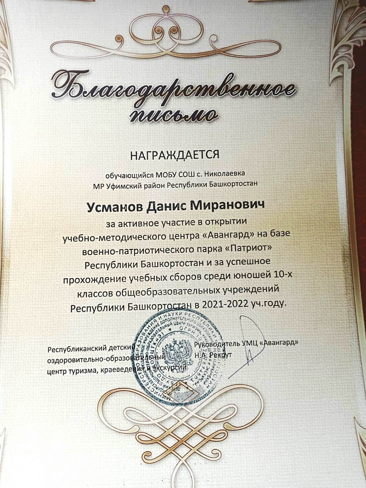муниципальное общеобразовательное бюджетное учреждение средняя общеобразовательная школа им. А.Ф. Михайлова д.Николаевка муниципального района Уфимский район Республики Башкортостан