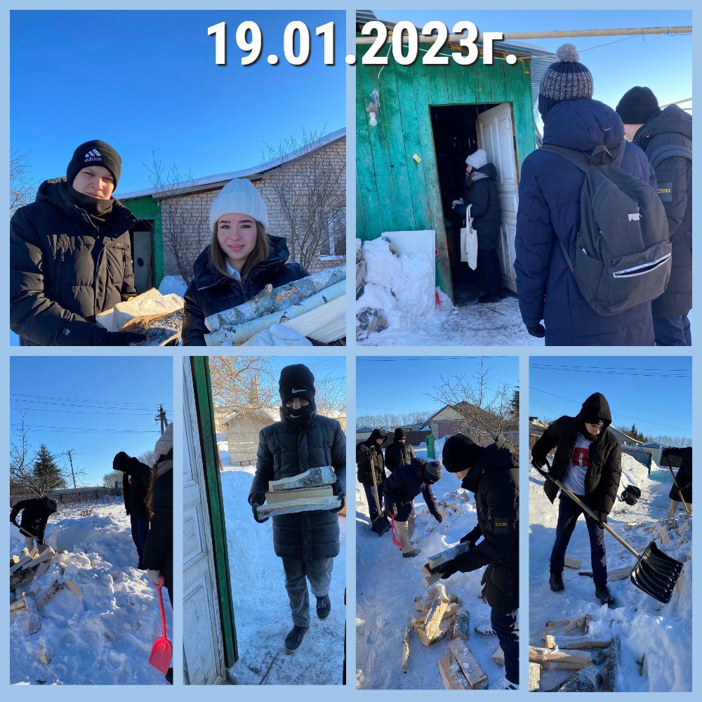 Ребята нашей школы, собравшись дружной командой, совместно со специалистом Молодежного центра МР Уфимский район предложили свою помощь жене мобилизованного из д. Николаевка. Семья попросила волонтеров собрать дрова, которые долгое время никто не мог перетащить в баню, и почистить снег.